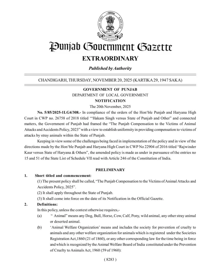 पंजाब और हरियाणा हाई कोर्ट की फटकार के बाद पंजाब सरकार ने आवारा जानवरों के हमले से होने वाली मौतों और हादसों पर मुआवज़ा देने की नई पॉलिसी तो जारी कर दी, लेकिन यह पॉलिसी पीड़ितों के लिए राहत से ज्यादा सिरदर्द बनकर आई है। अब किसी भी हमले के मामले में मुआवज़ा पाने के … <a href="https://thestateheadlines.com/new-compensation-policy-victims-may-be-helpless-in-front-of-the-wall-of-evidence/">Continued</a>